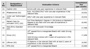 പത്താം ക്ലാസ് പാസായവർക്ക് MTS, ഡ്രൈവർ തസ്തികയിലേക്ക് അപേക്ഷിക്കാം. +2 പാസായവർക്ക് ടാറ്റ എൻട്രി ഓപ്പറേറ്റർ തസ്തികയിലേക്കും, ഡിപ്ലോമ യോഗ്യത ഉള്ളവർക്ക് ലിഫ്റ്റ് മാൻ , ജൂനിയർ ലാബ് ടെക്നോളോജിസ്റ് തുടങ്ങിയ തസ്തികയിലേക്കും അപേക്ഷിക്കാം. മറ്റുള്ള ഒഴിവുകളിലേക്ക് യോഗ്യത ഡിഗ്രീ ( ബന്ധപ്പെട്ട മേഖലയിൽ). കൂടുതൽ മനസിലാക്കാൻ ഒഫീഷ്യൽ നോട്ടിഫിക്കേഷൻ വായിച്ചു മനസിലാക്കാം.