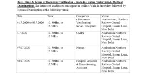 നോർത്തേൺ റെയിൽവെയുടെ വിജ്ഞാപനം. CMP, നേഴ്സ്, മൾട്ടി പർപ്പസ് ഹോസ്പിറ്റൽ അസിസ്റ്റന്റ്, ഹൗസ് കീപ്പിങ് അസിസ്റ്റന്റ്, ഹോസ്പിറ്റൽ അസിസ്റ്റന്റ് തുടങ്ങിയ തസ്തികകളിലേക്ക് യോഗ്യതയുള്ളവർക്ക് അവസരം. നോർത്തേൺ സെൻട്രൽ റെയിൽവെ സെൻട്രൽ ഹോസ്പിറ്റലിലേക്കാണ് (ന്യൂ ഡൽഹി) 3 മാസത്തെ കോൺട്രാക്ട് ബൈസിൽ നിയമനം നടക്കുന്നത്. യോഗ്യതയുള്ളവർ അപ്ലിക്കേഷൻ ഫോമും ആവശ്യമുള്ള രേഖകളും ഉൾപ്പടെ ഇന്റർവ്യൂ പങ്കെടുക്കാം.